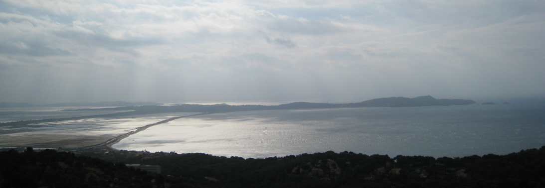 Par temps d'orage, à partir de l'Observatoire, vue de l'Almanarre, de la Route du sel et de Giens