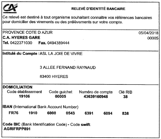 | Cotisation 2023 | 250 € | Pour 31 mai 2023 | |